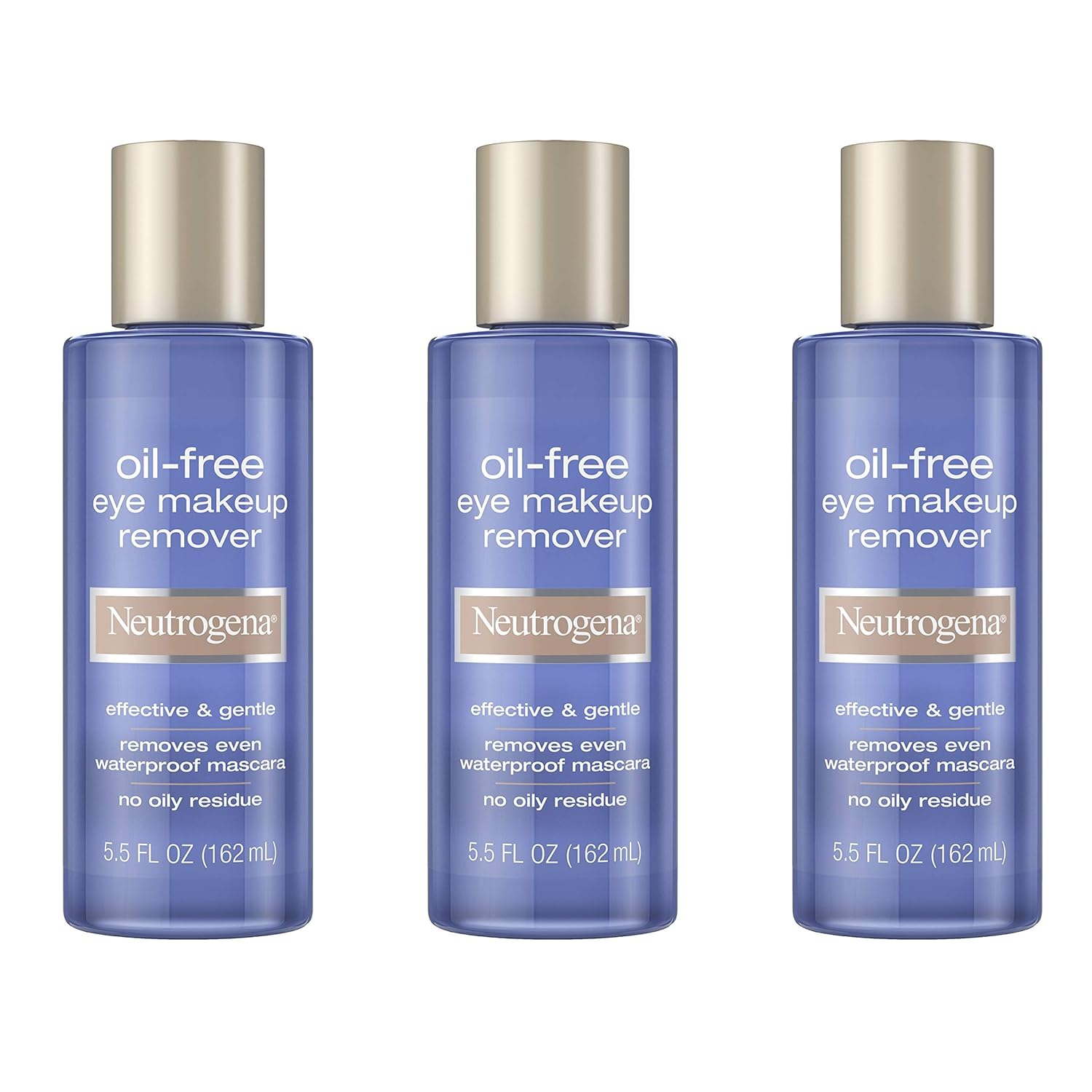 Neutrogena Gentle Oil-Free Eye Makeup Remover & Cleanser for Sensitive Eyes, Non-Greasy Makeup Remover, Removes Waterproof Mascara, Dermatologist & Ophthalmologist Tested, 5.5 fl. oz, 3 Pack