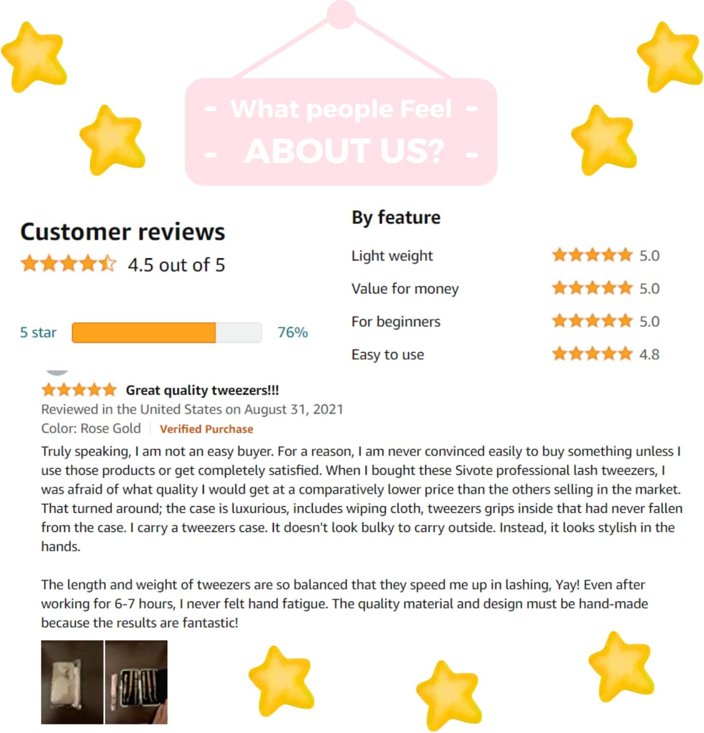 - Lifetime Convenience – Bent or misaligned tweezer eyelash extensions can be frustrating. That’s why we offer free lifetime tip calibrations! Return any bent fiber tip tweezers for lash extensions set, and we’ll send you a new one—guaranteed precision for life.