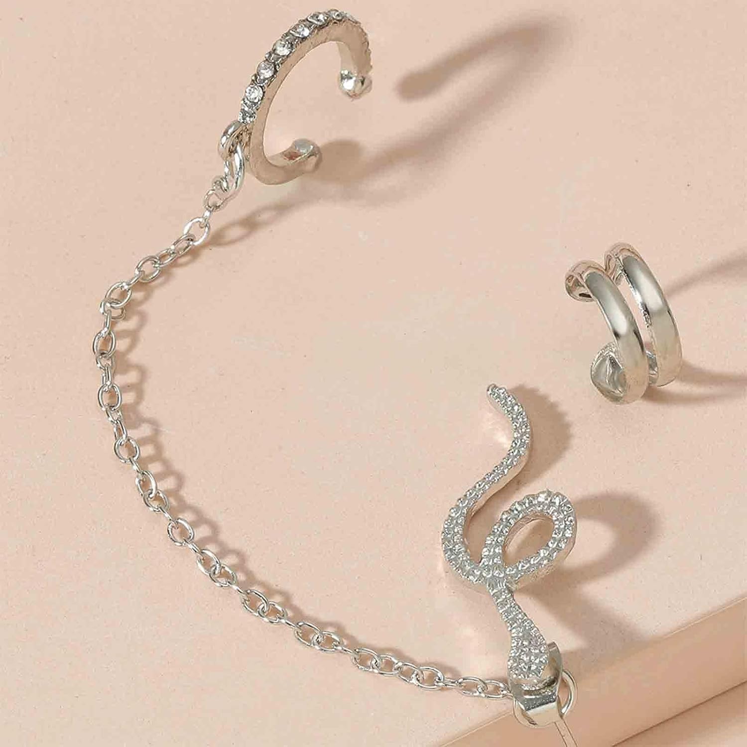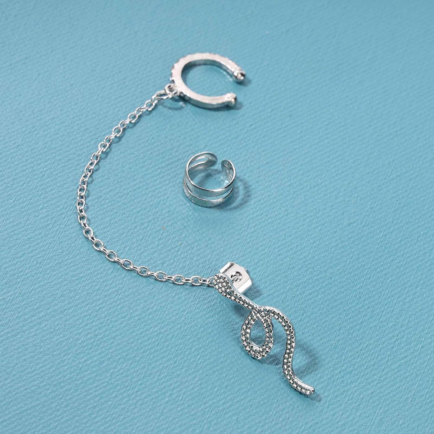 - Silver Snake Earcuff Chain Earrings as pictures shown,dainty earrings for your choice.