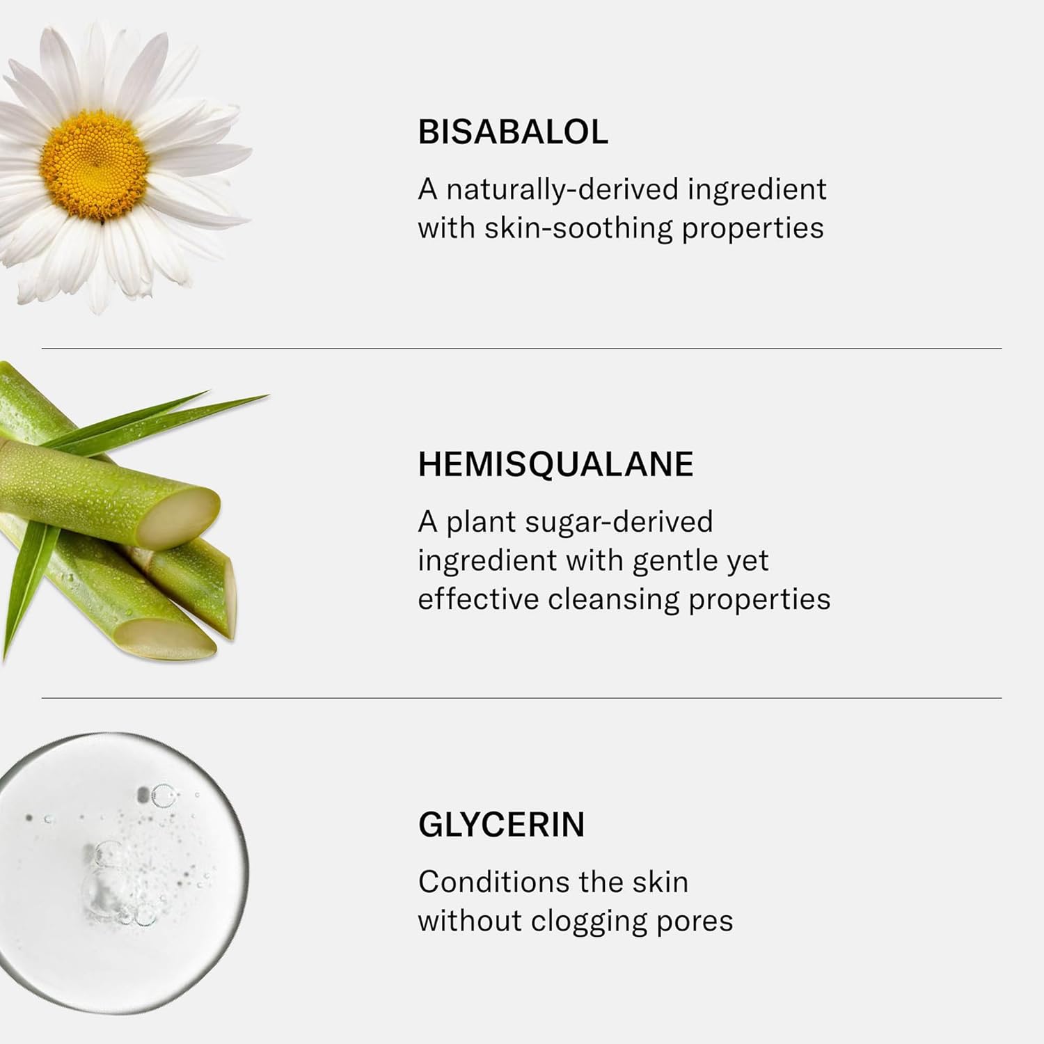 - Hero Ingredients: Bisabolol: A naturally-derived ingredient with skin-soothing properties. Glycerin: Conditions the skin without clogging pores. Hemisqualane: A plant sugar-derived ingredient with gentle yet effective cleansing properties