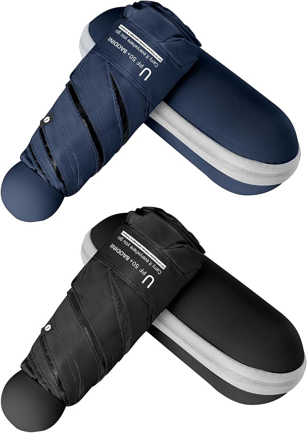BAODINI Travel Essentials Mini Umbrella for Purse With Case Small Compact UV Sun Protection Lightweight Tiny Pocket Manual Open Close Umbrella for Women Kids and Men Fit Purse Backpack