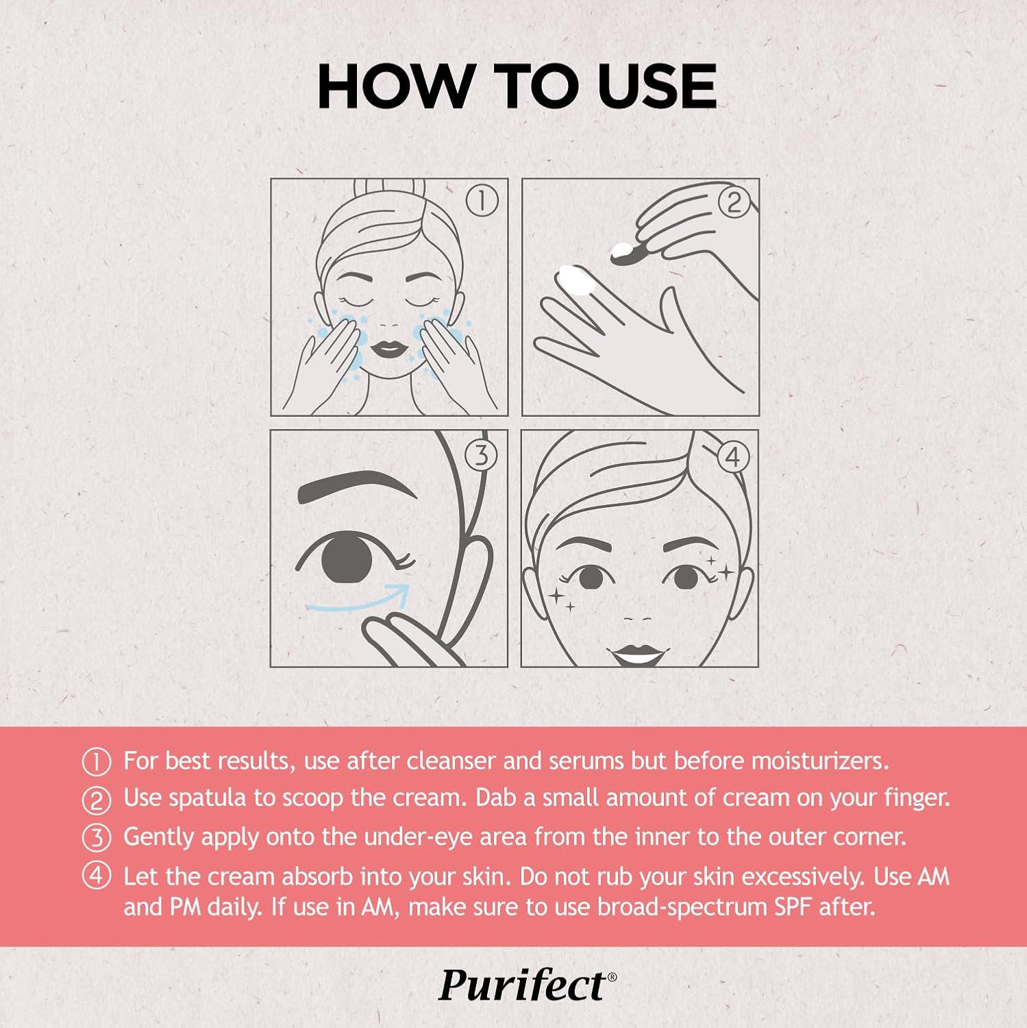 - [DAY & NIGHT EYE CREAM] For best results, use after cleanser and serums but before moisturizers. Use AM and PM daily. If use in AM, make sure to use broad-spectrum SPF after.
