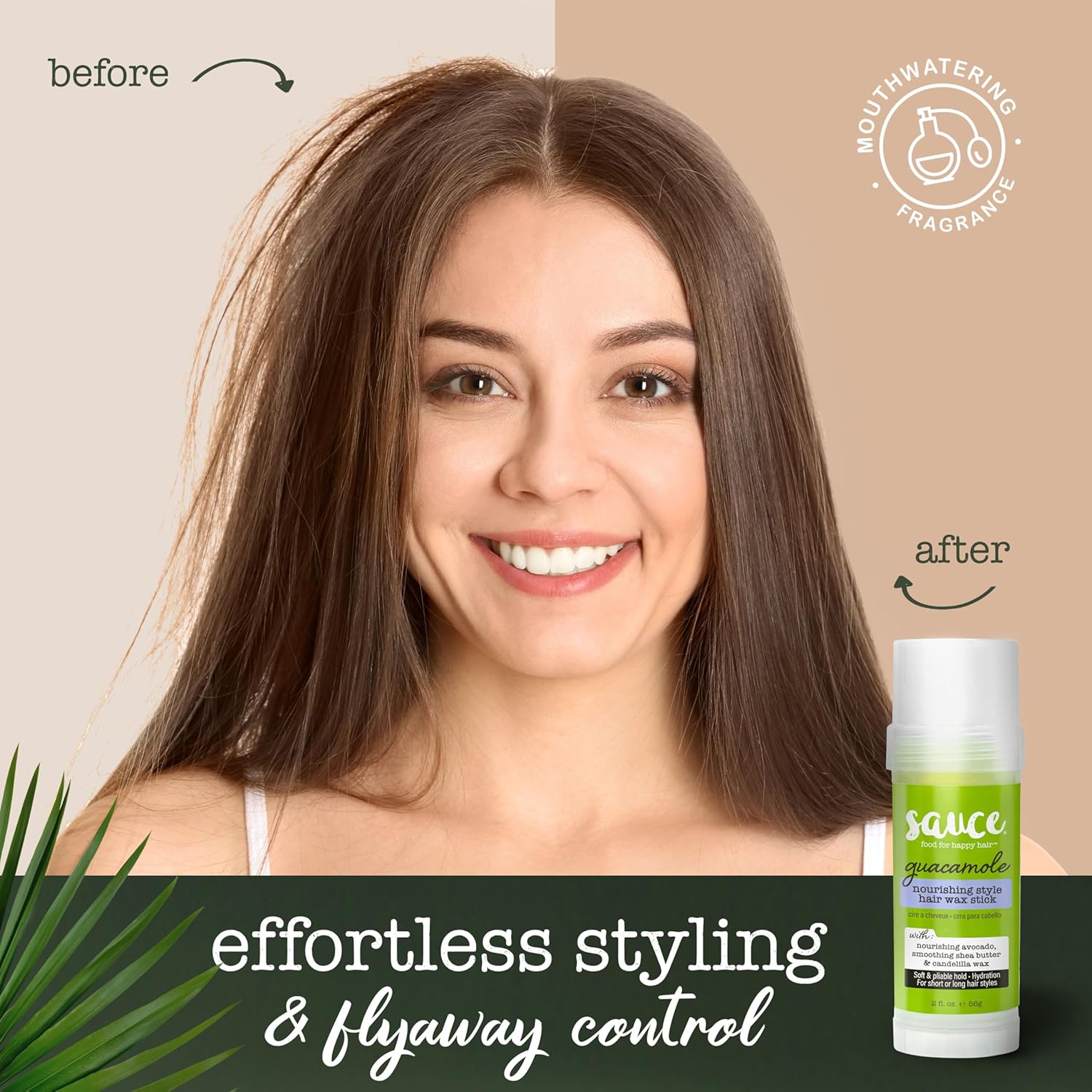 - Guac for Your Locks: At Sauce Beauty, we're inspired by how real ingredients can nourish not just your body, but also your hair; Our Guacamole Hair Wax Stick is formulated to help soften & restore moisture to your stressed-out, brittle hair for a healthy, sleek look