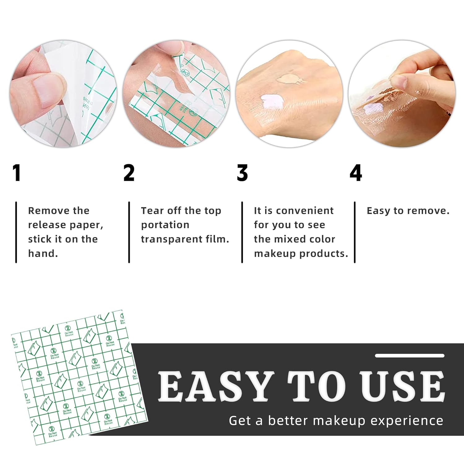 - Easy To Use:Peel off the clear film protecting the band-aid, pat it on your hand, mix the paste makeup on top until you're satisfied, and throw away the suction cup when you're done; no extra hand washing or hassle, saving you time and energy.