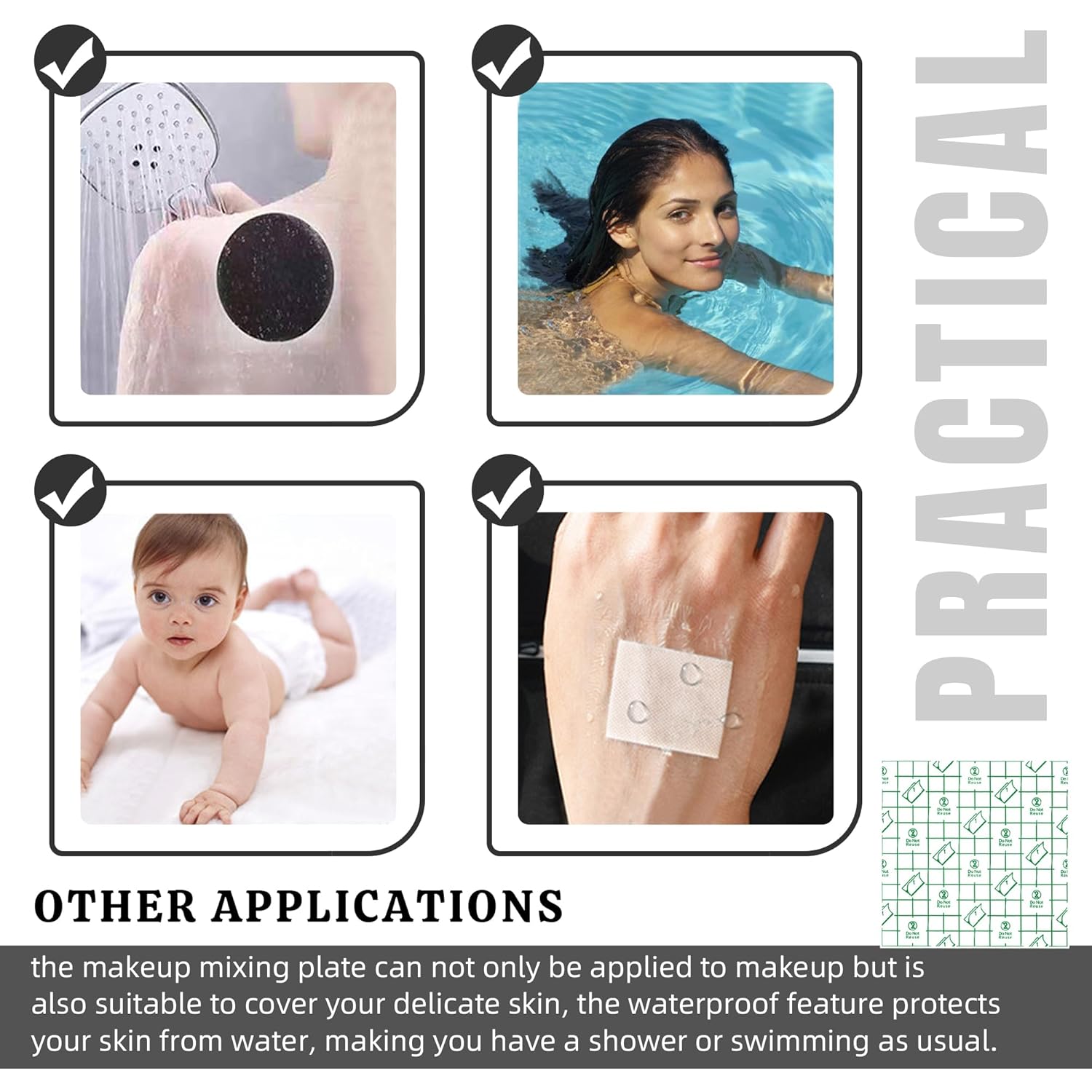 - Widely Used:The adhesive dressing tape can be used as a disposable palette, you can also use it to cover your small wounds, and the waterproof material can protect your skin from water, allowing you to shower or swim as usual.