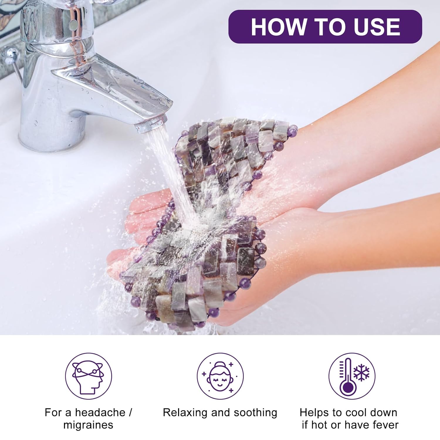 Jade Eye Mask, Rose Quartz Eye Mask,Gemstone Eye Mask Anti Aging Therapy Hot or Cold Using (#2-Amethyst)