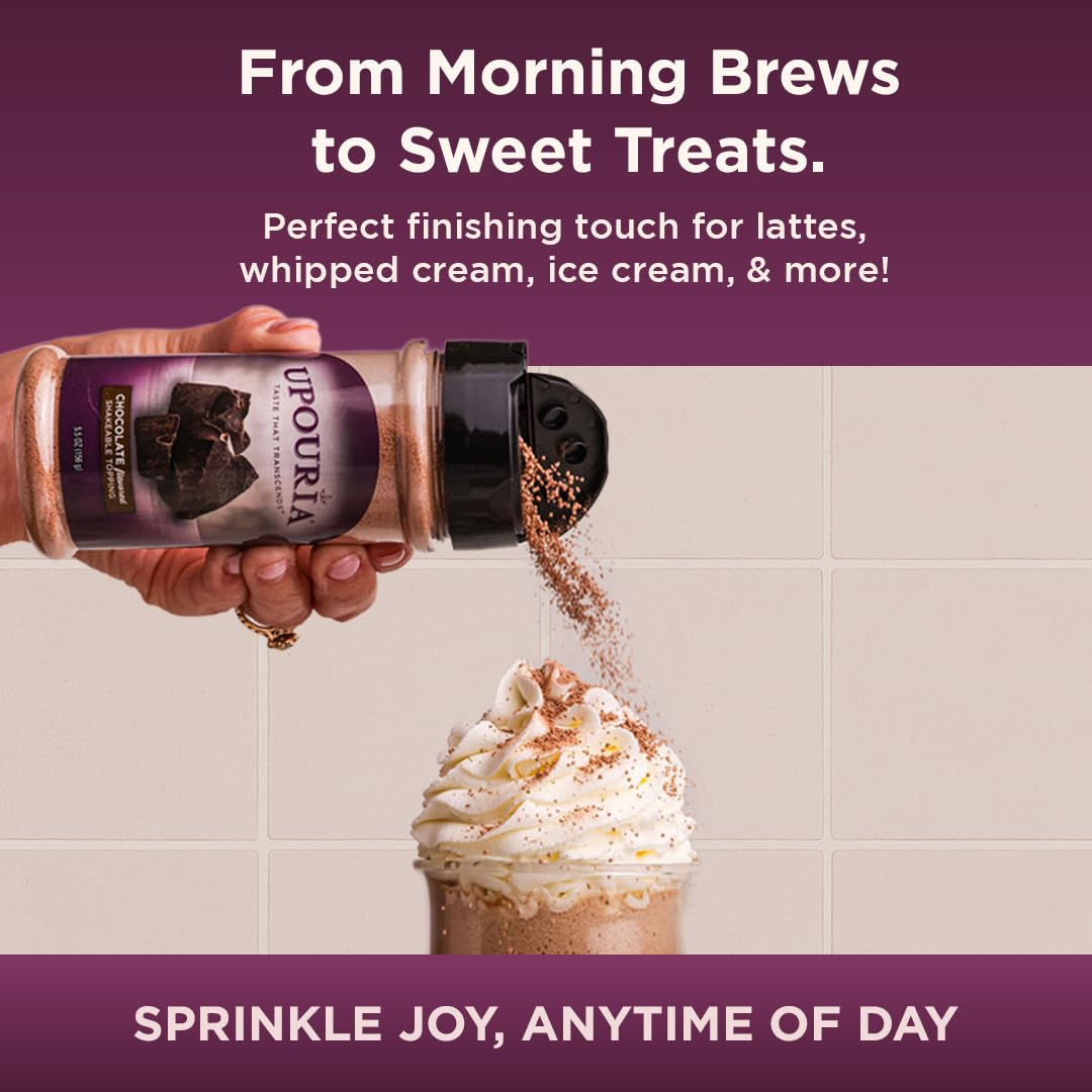 Upouria Chocolate Flavored Shakable Topping for Coffee, Lattes, Desserts, Gourmet Cocoa Taste, 5.5oz