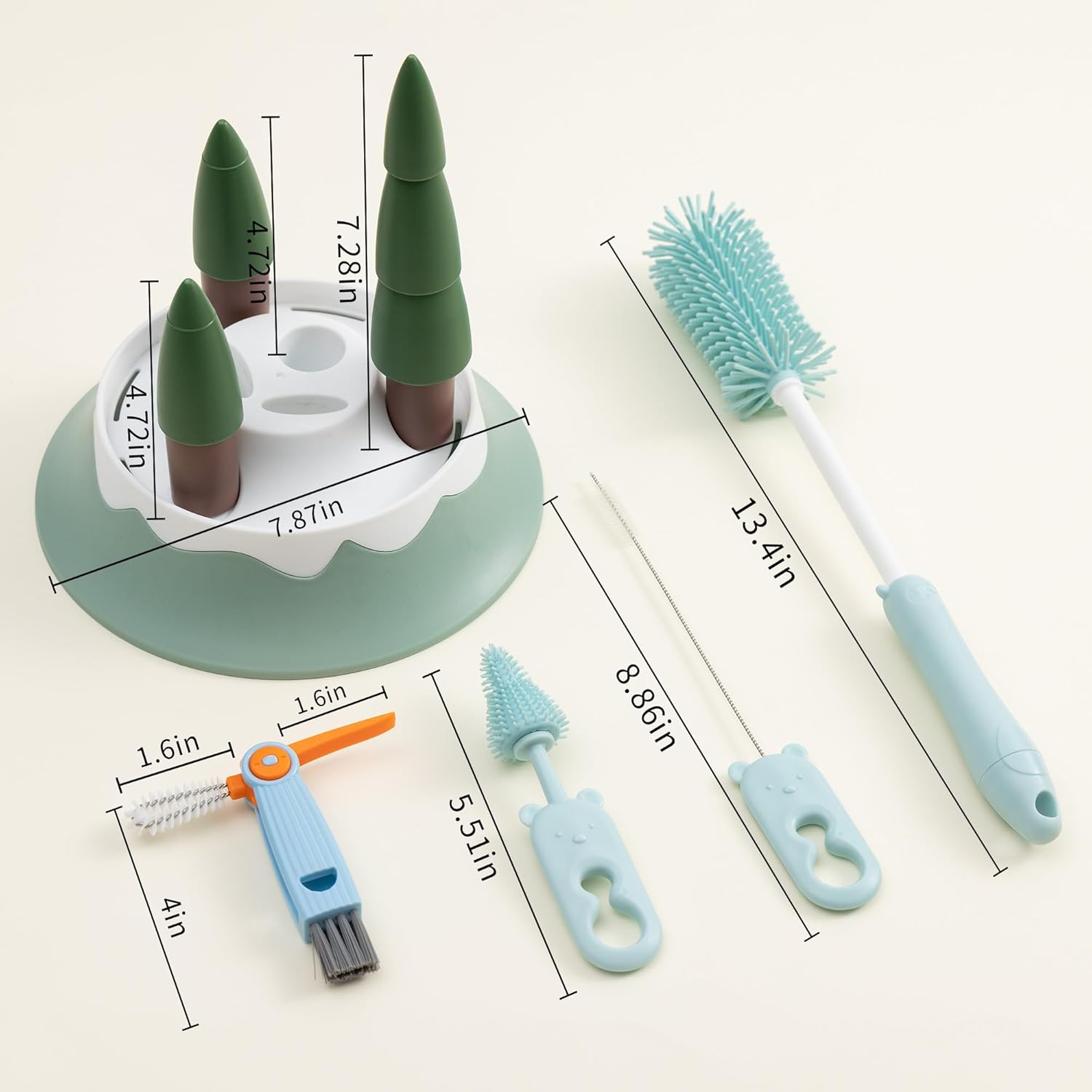 - This silicone bottle brushes designed with long handle, including 1 baby bottle brush, 1 pacifier brush, 1 straw brush, and 1 Tiny Cup Lid Gap Cleaning Brush. Meet the cleaning needs of most containers.