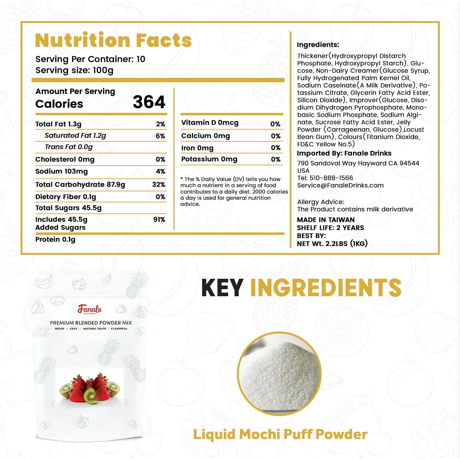 Fanale Premium Mochi puff Bubble Tea Flavoring Powder | Perfect for Baking, Smoothies, Desserts and Drinks | Instant Flavoring Powder for Boba Milk Tea - 2.2 Pounds (Pack of 1)