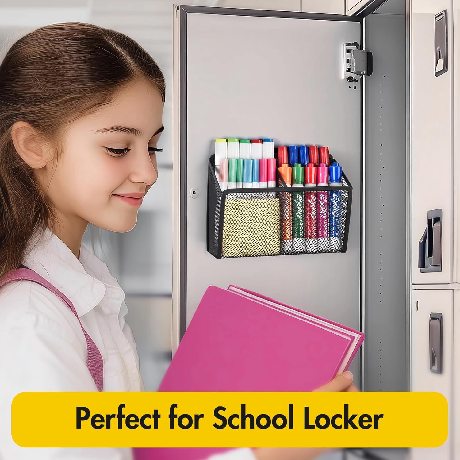 BEYGORM Magnetic Dry Erase Marker Holder for Whiteboard, Mesh Pen & Pencil Holder for Refrigerator, Strong Magnetic Basket for School Locker, Office & Classroom Organizer (Black, 1-Pack)