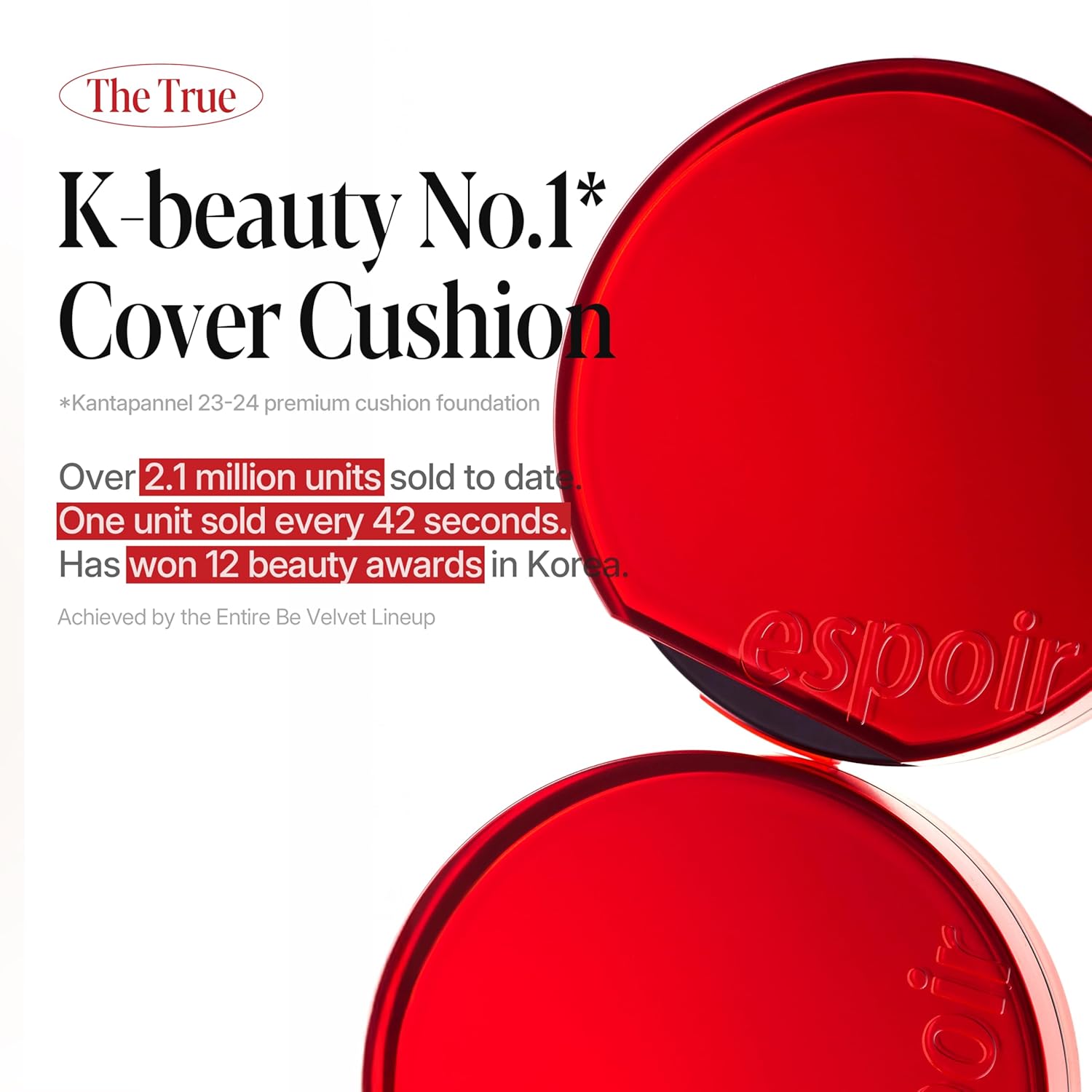 espoir [NEW] Be Velvet Cushion Foundation | Quick and Easy Coverage with Long-lasting Color by Zero Oxidation (#45 Ganache, 0.46 Ounce (Pack of 1))
